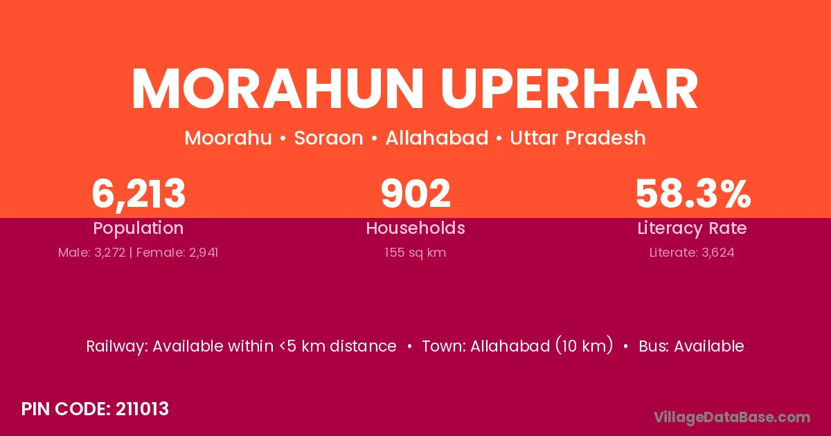 Allahabad (10 km) is the nearest town to Morahun Uperhar village for major economic activities and is located approximately 10 km away.