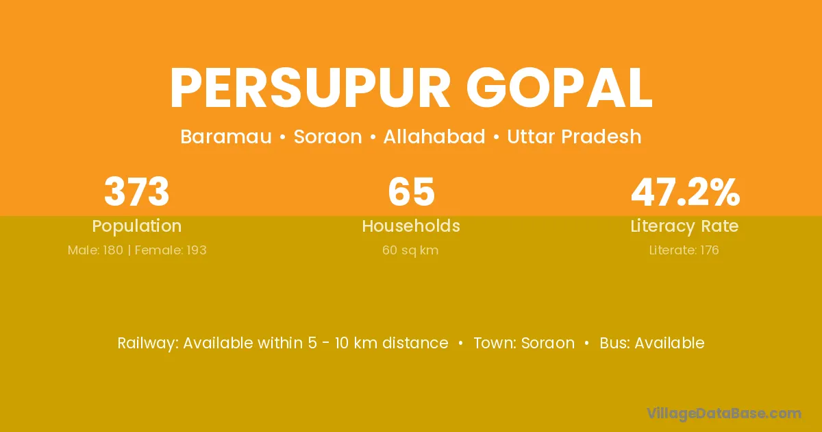 Soraon is the nearest town to Persupur Gopal village for major economic activities