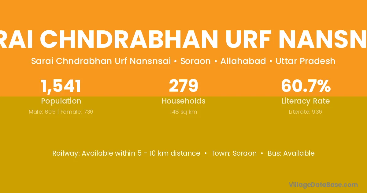 Sarai Chndrabhan Urf Nansnsai village has a total population of 1,541 people, of which 805 are males and 736 are females.