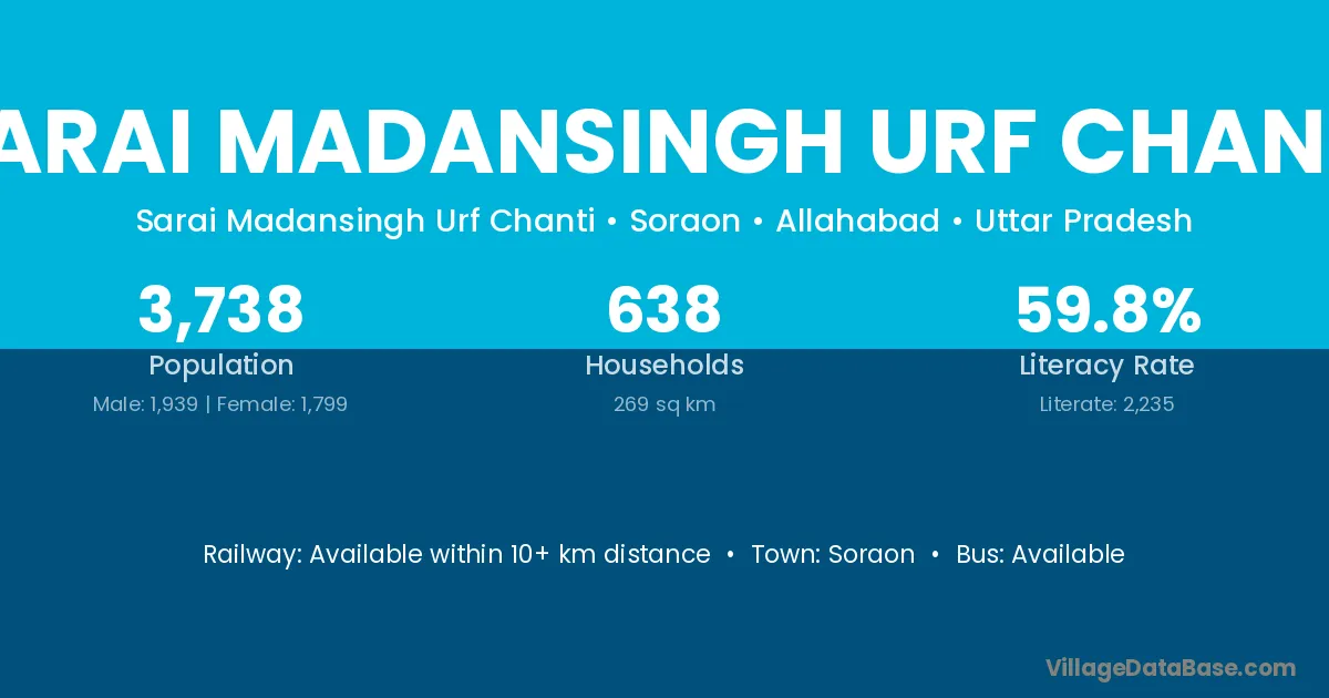 Sarai Madansingh Urf Chanti village has a total population of 3,738 people, of which 1,939 are males and 1,799 are females.