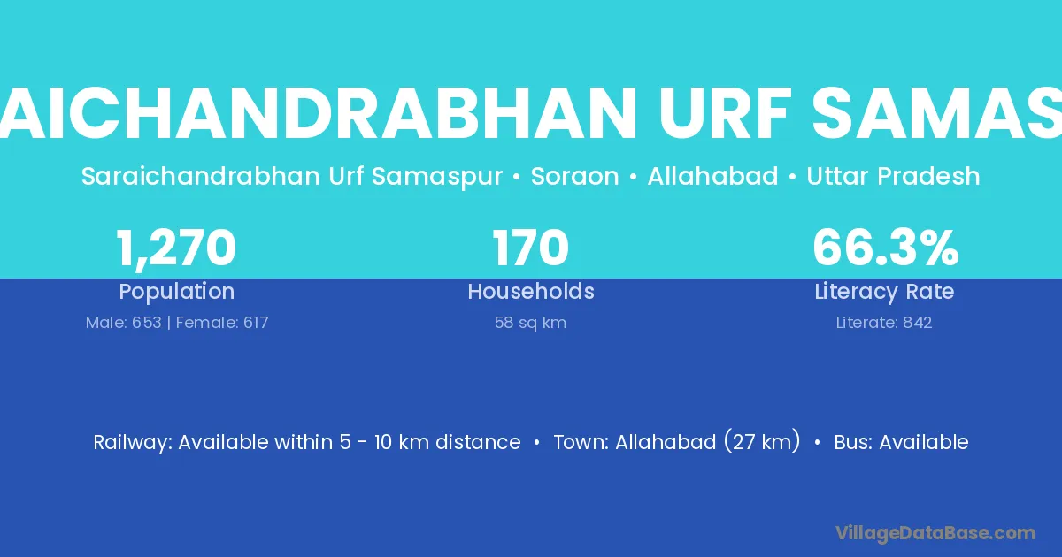 Saraichandrabhan Urf Samaspur village has a total population of 1,270 people, of which 653 are males and 617 are females.