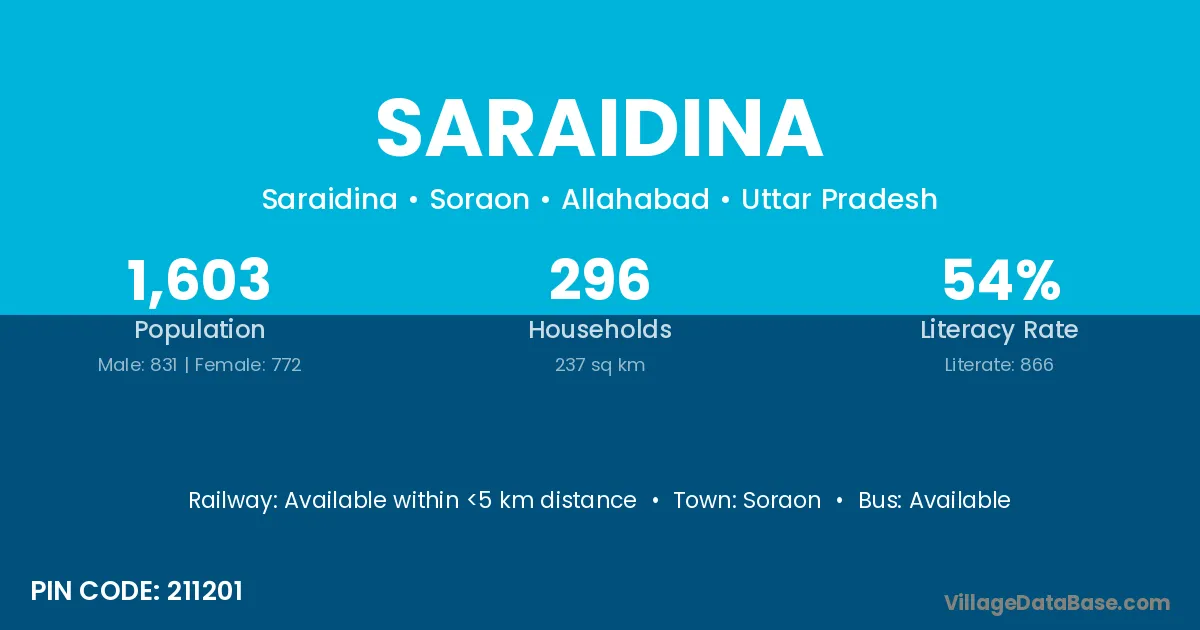 Soraon is the nearest town to Saraidina village for major economic activities