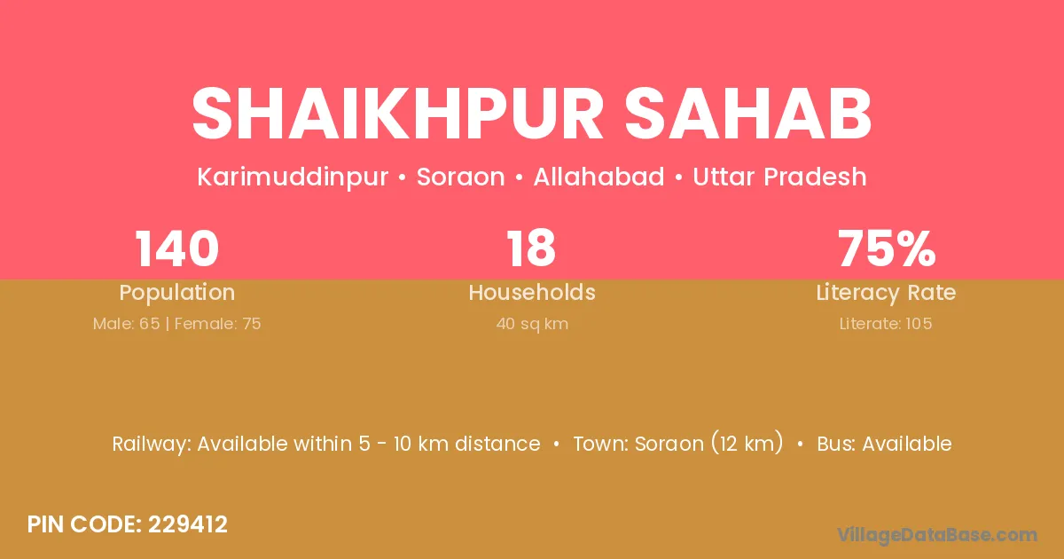 Soraon (12 km) is the nearest town to Shaikhpur Sahab village for major economic activities and is located approximately 12 km away.
