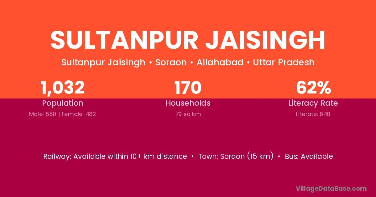 Sultanpur Jaisingh village has a total population of 1,032 people, of which 550 are males and 482 are females.