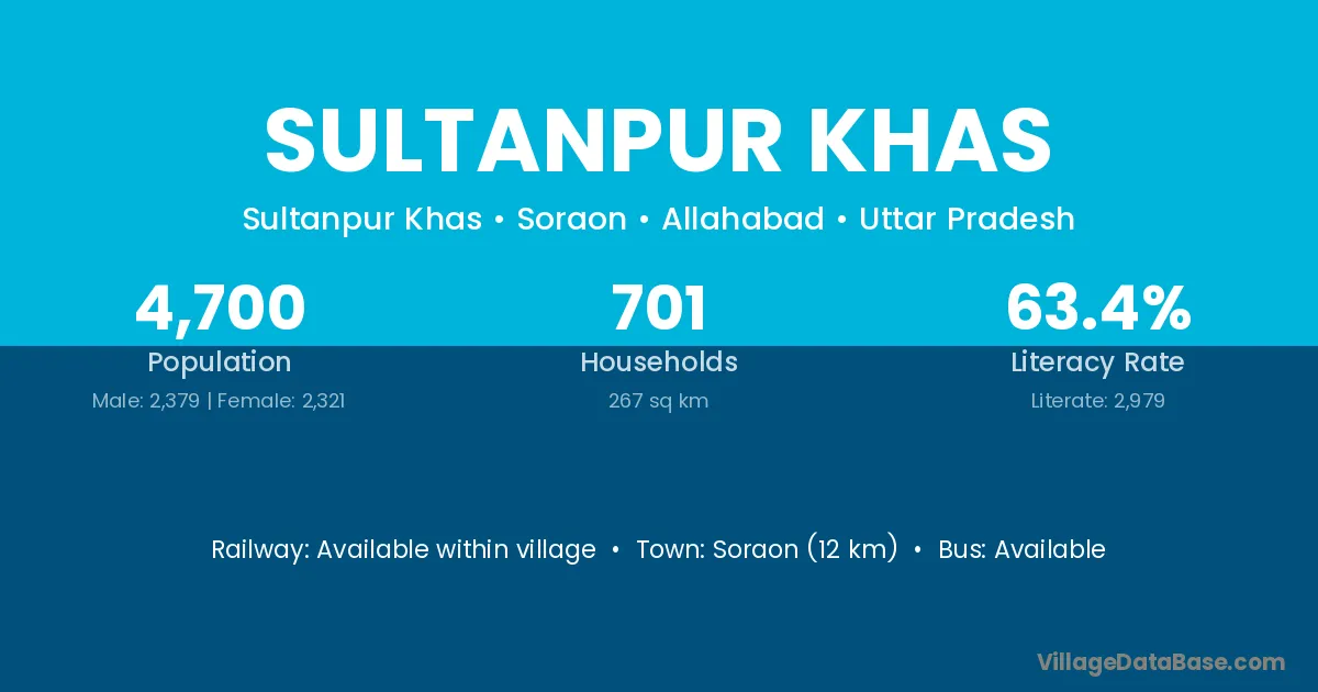 Soraon (12 km) is the nearest town to Sultanpur Khas village for major economic activities and is located approximately 12 km away.