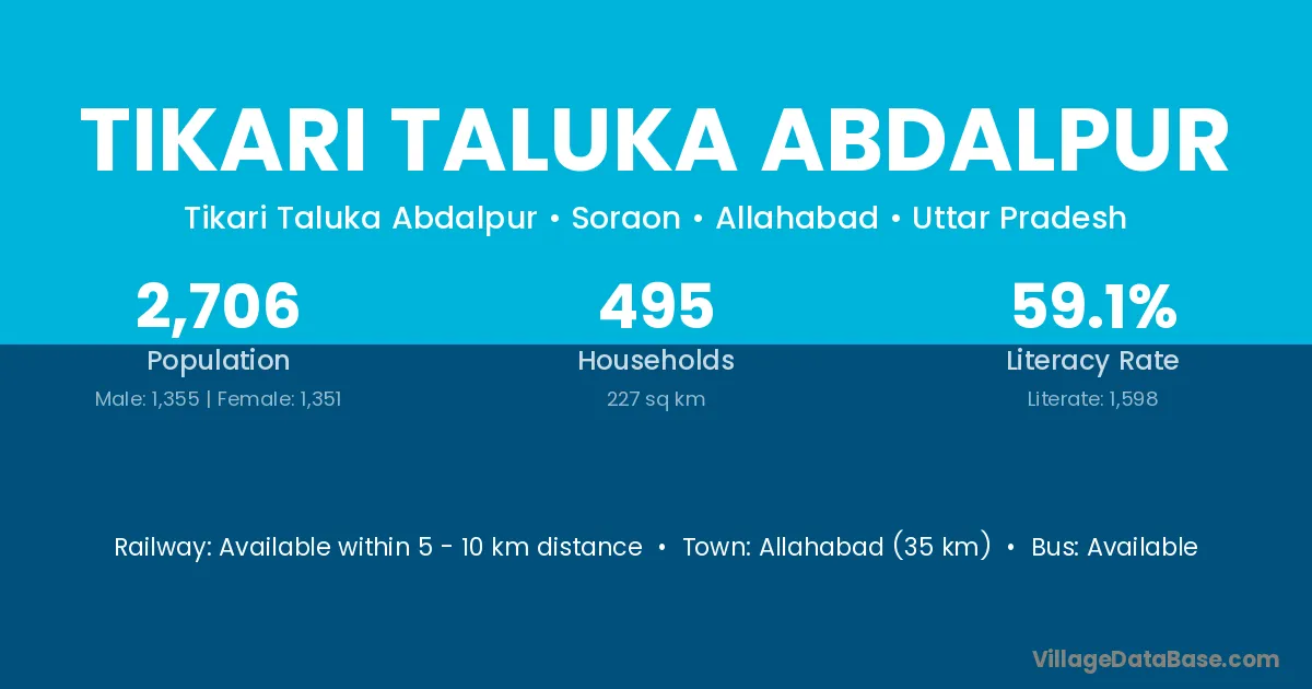 Allahabad (35 km) is the nearest town to Tikari Taluka Abdalpur village for major economic activities and is located approximately 35 km away.