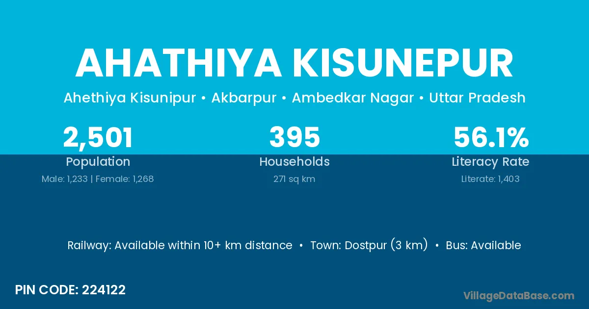Dostpur (3 km) is the nearest town to Ahathiya Kisunepur village for major economic activities and is located approximately 3 km away.
