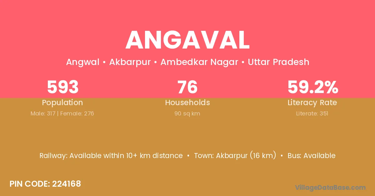 Akbarpur (16 km) is the nearest town to Angaval village for major economic activities and is located approximately 16 km away.