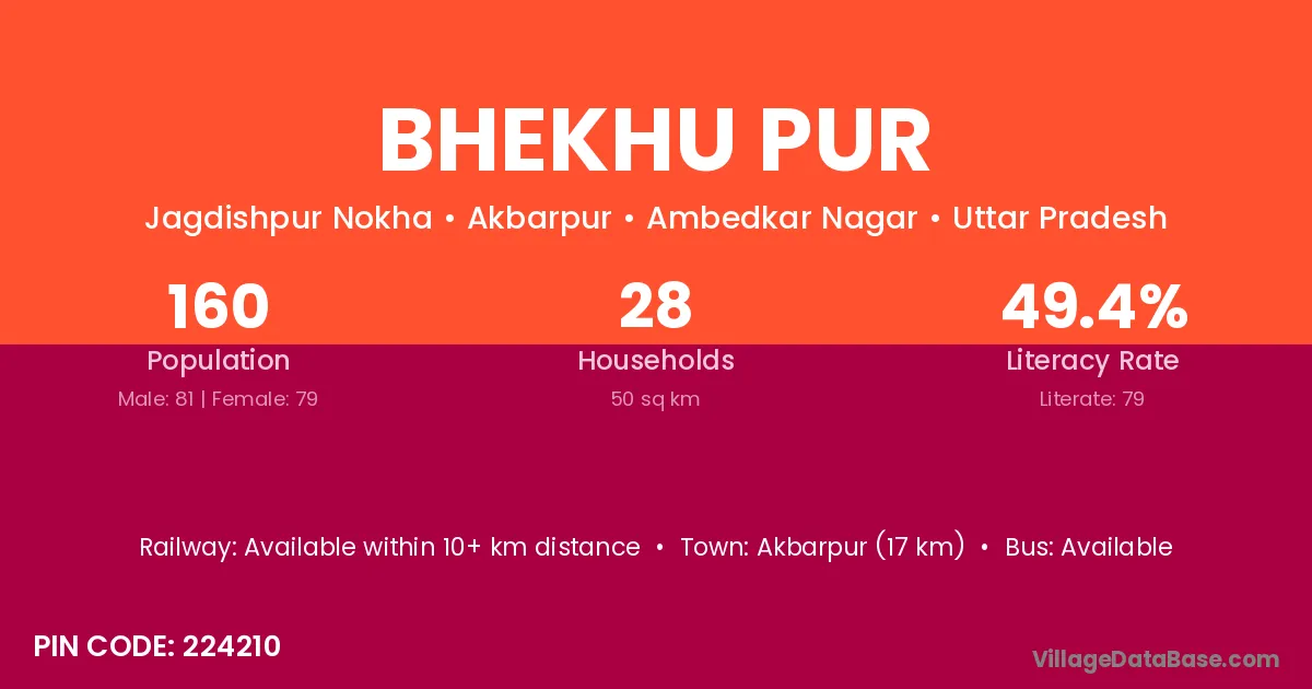 Akbarpur (17 km) is the nearest town to Bhekhu Pur village for major economic activities and is located approximately 17 km away.