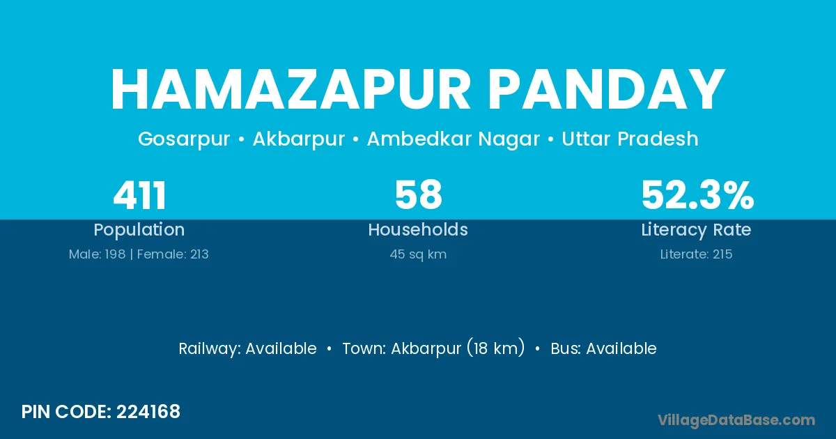 Hamazapur Panday village has a total population of 411 people, of which 198 are males and 213 are females.