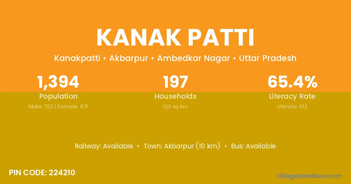 Akbarpur (10 km) is the nearest town to Kanak Patti village for major economic activities and is located approximately 10 km away.