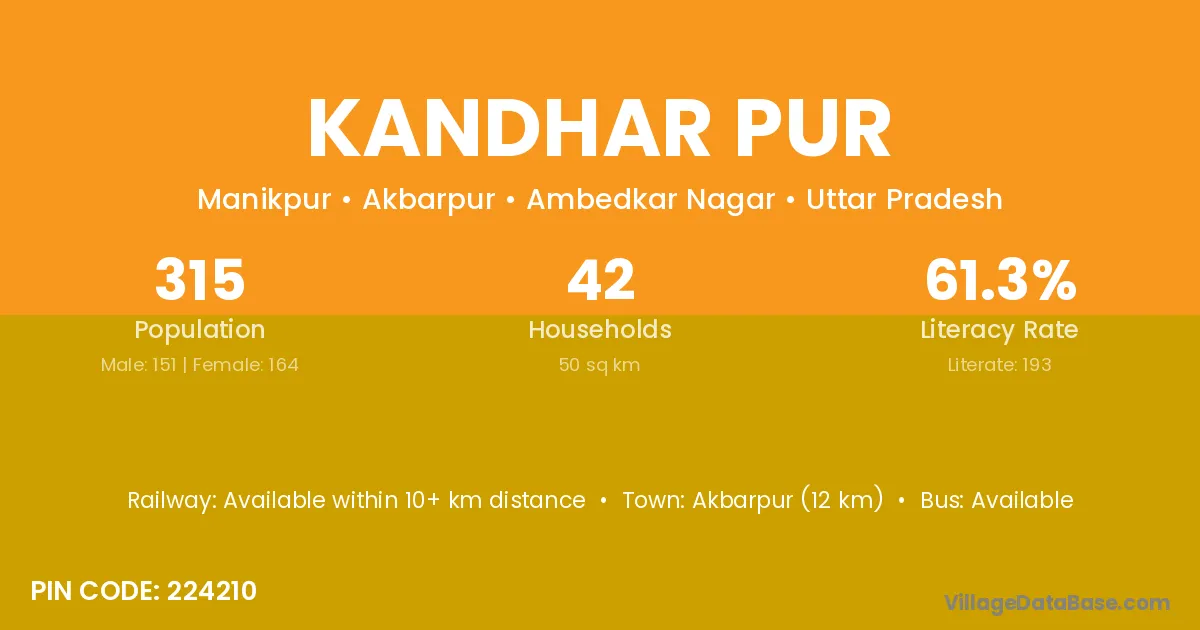 Akbarpur (12 km) is the nearest town to Kandhar Pur village for major economic activities and is located approximately 12 km away.