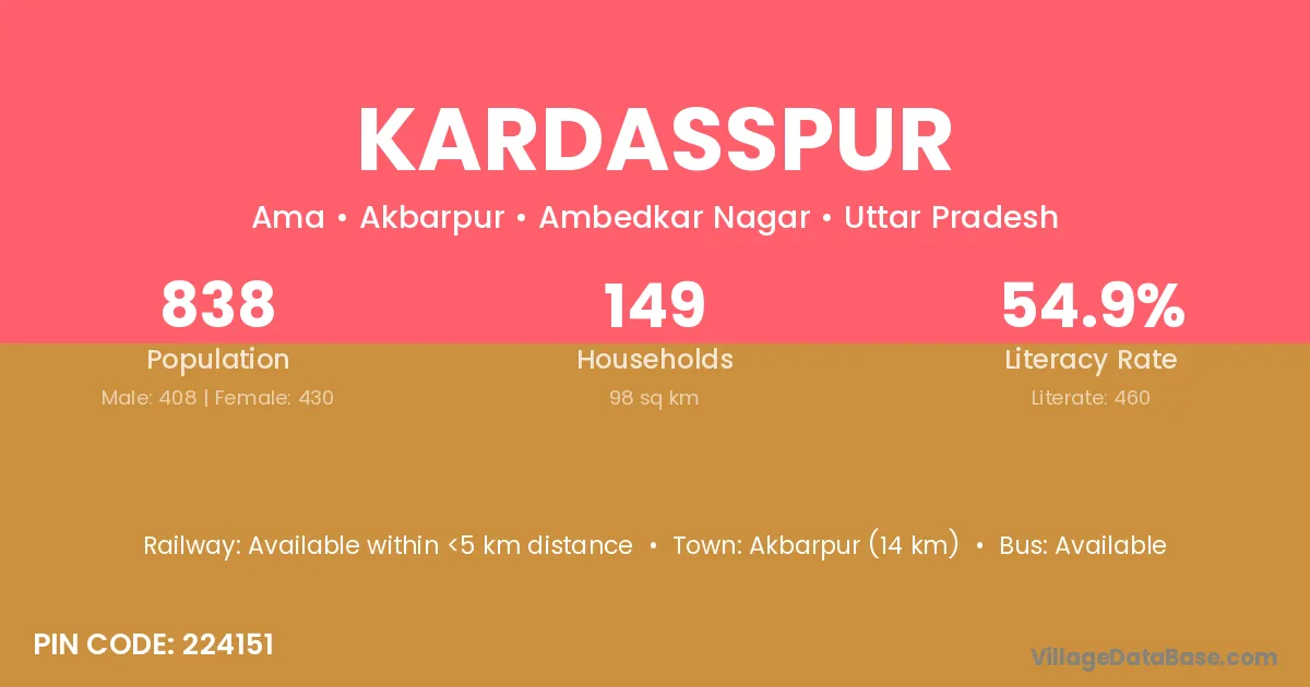 Akbarpur (14 km) is the nearest town to Kardasspur village for major economic activities and is located approximately 14 km away.