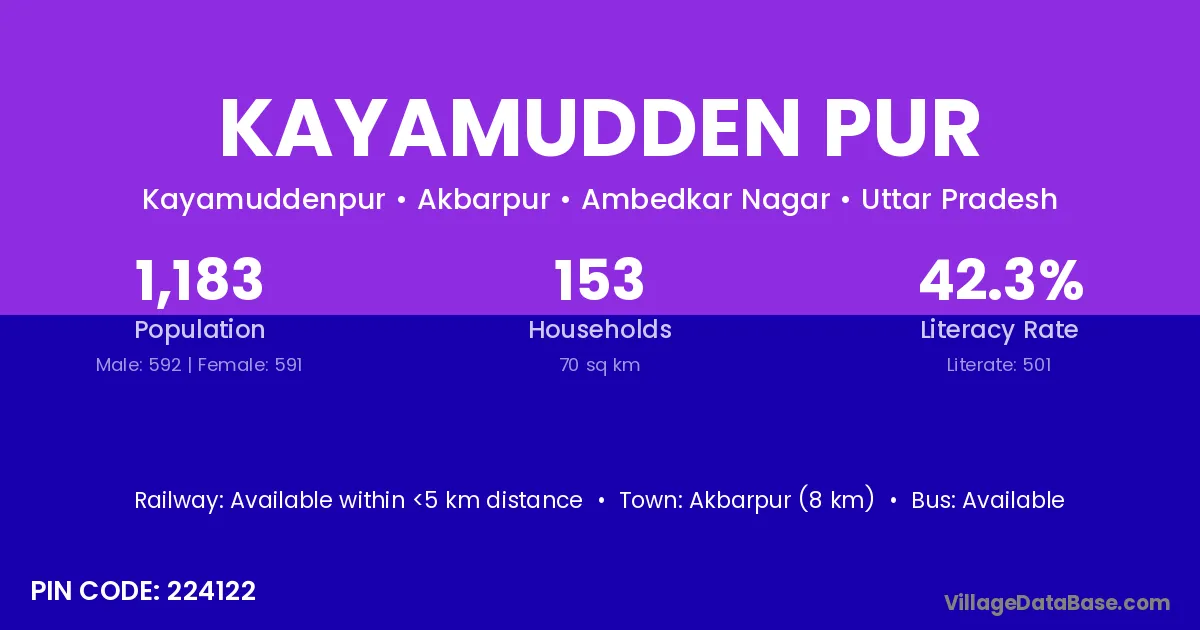 Akbarpur (8 km) is the nearest town to Kayamudden Pur village for major economic activities and is located approximately 8 km away.
