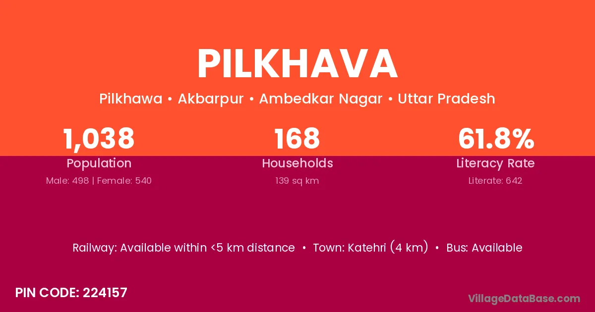 Pilkhava village has a total population of 1,038 people, of which 498 are males and 540 are females.