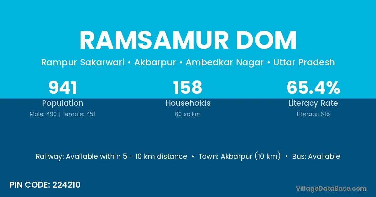 Akbarpur (10 km) is the nearest town to Ramsamur Dom village for major economic activities and is located approximately 10 km away.
