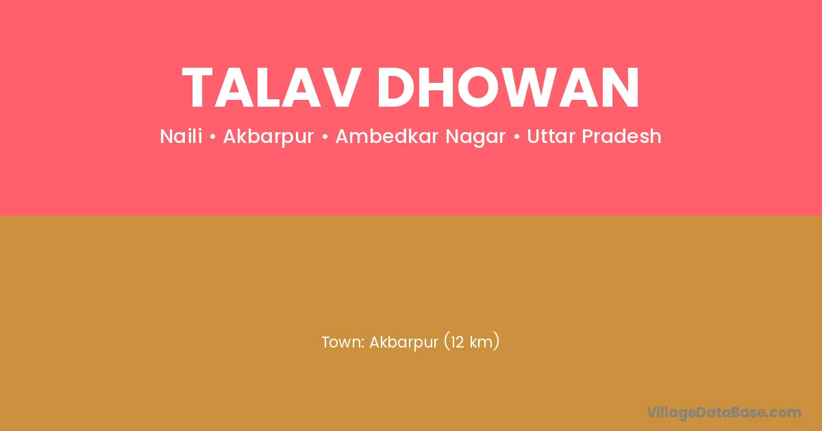 Akbarpur (12 km) is the nearest town to Talav Dhowan village for major economic activities and is located approximately 12 km away.