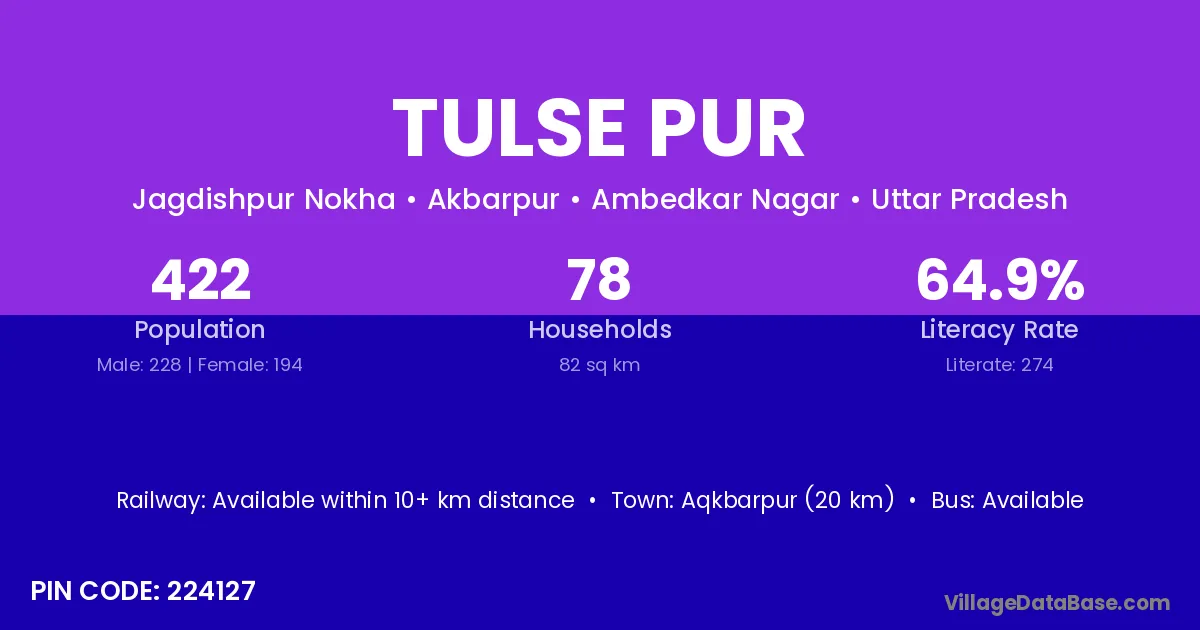 Aqkbarpur (20 km) is the nearest town to Tulse Pur village for major economic activities and is located approximately 20 km away.