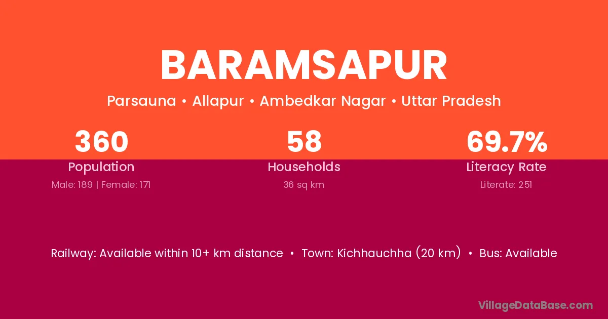 Baramsapur village has a total population of 360 people, of which 189 are males and 171 are females.