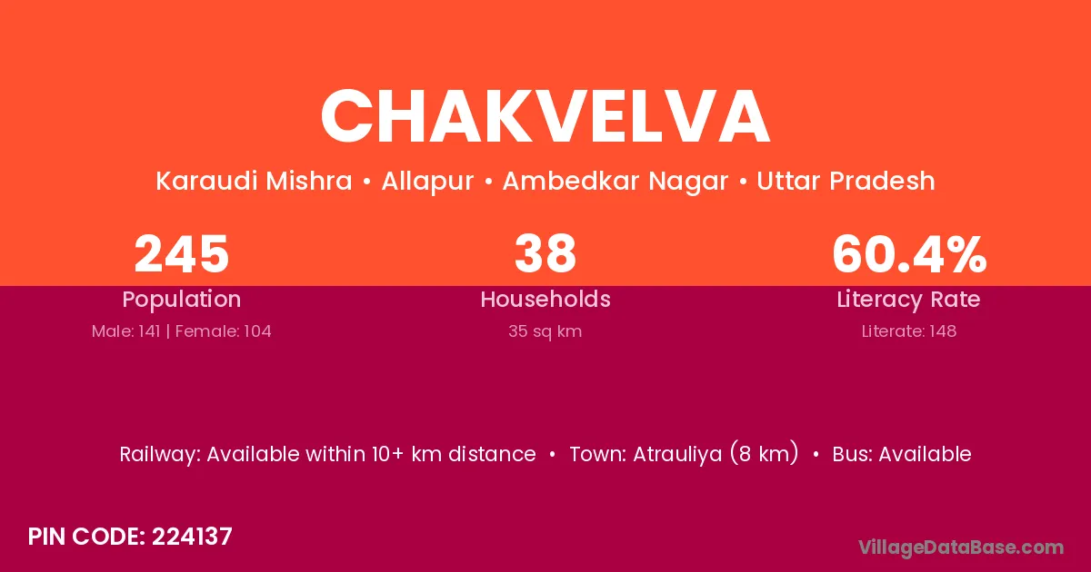Atrauliya (8 km) is the nearest town to Chakvelva village for major economic activities and is located approximately 8 km away.