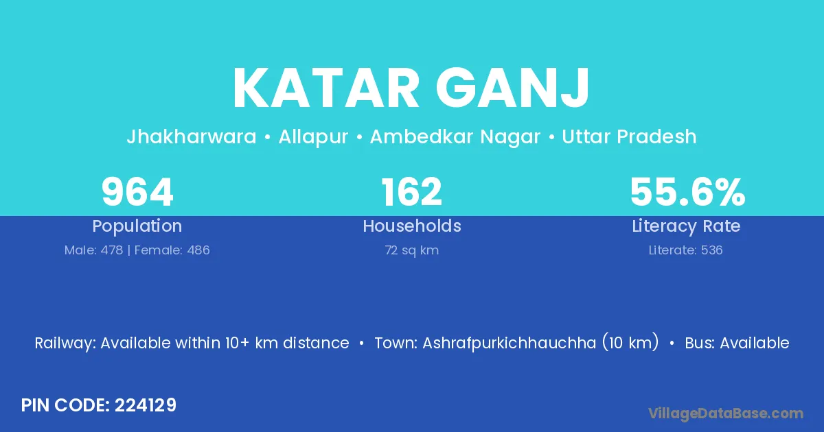 Ashrafpurkichhauchha (10 km) is the nearest town to Katar Ganj village for major economic activities and is located approximately 10 km away.