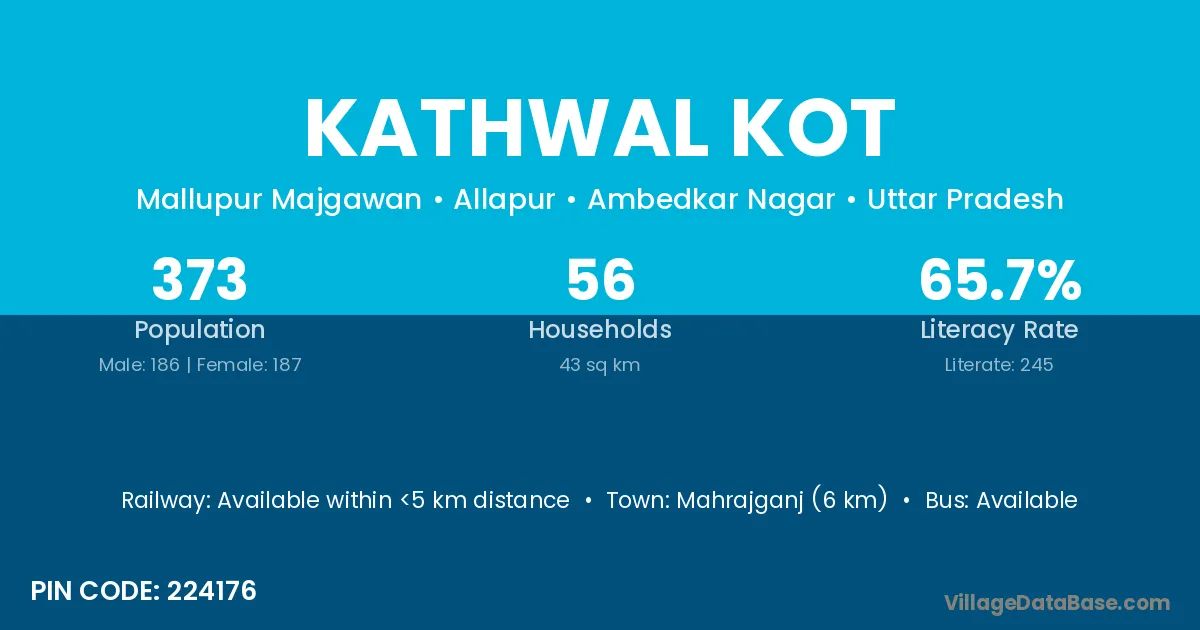 Mahrajganj (6 km) is the nearest town to Kathwal Kot village for major economic activities and is located approximately 6 km away.
