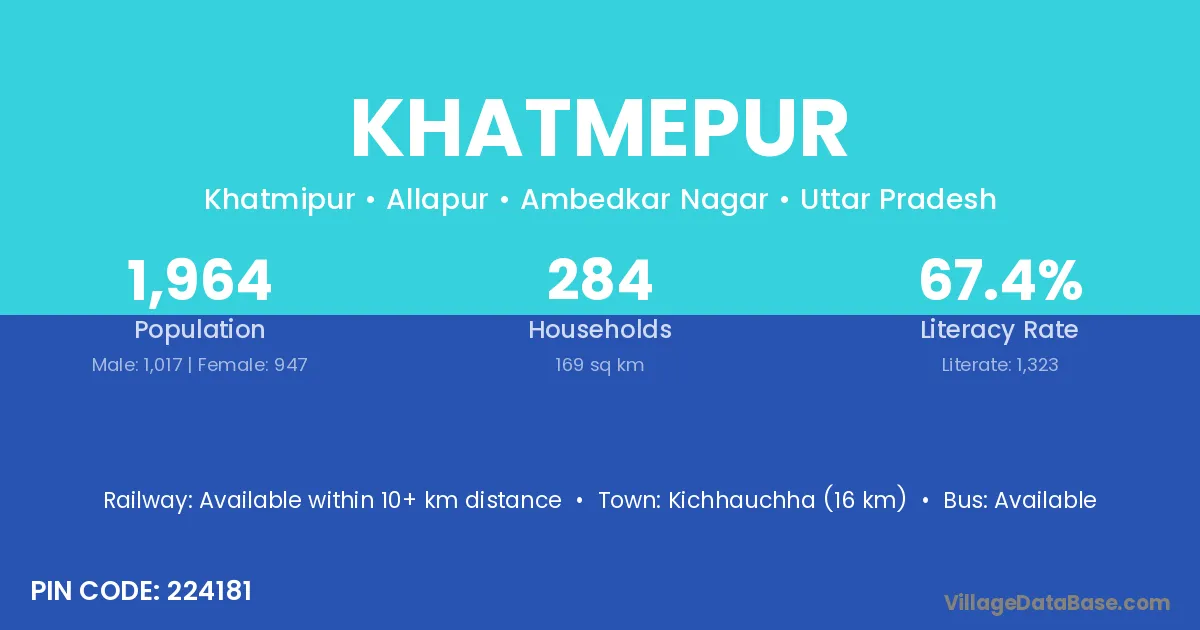Kichhauchha (16 km) is the nearest town to Khatmepur village for major economic activities and is located approximately 16 km away.