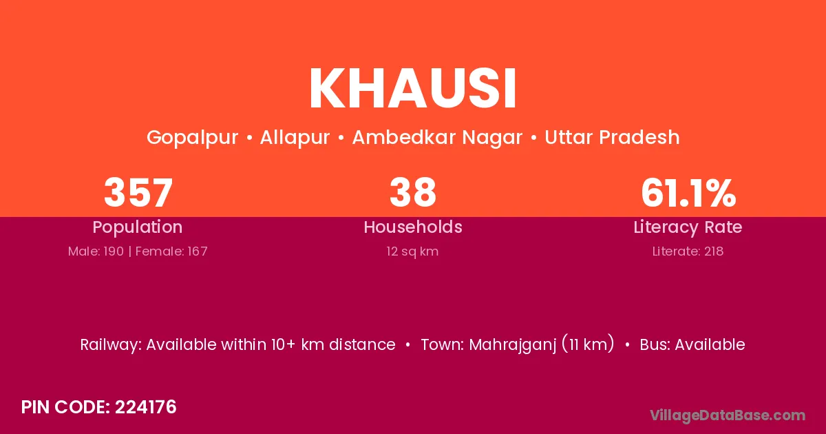 Mahrajganj (11 km) is the nearest town to Khausi village for major economic activities and is located approximately 11 km away.