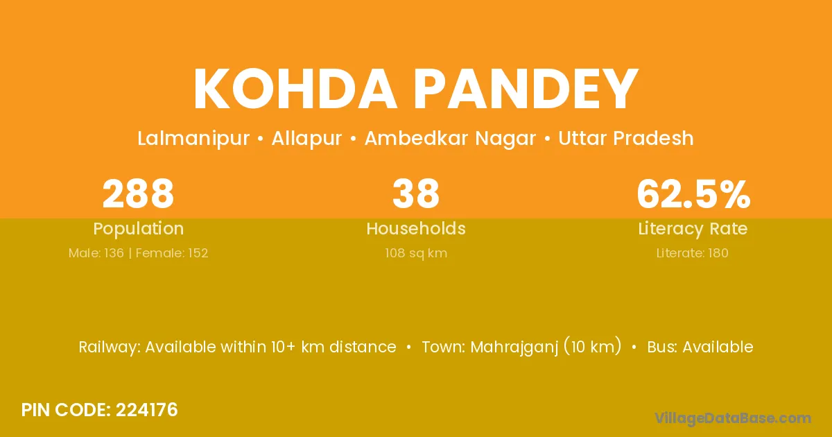 According to Census 2011 information, the village code of Kohda Pandey village is 224176.
