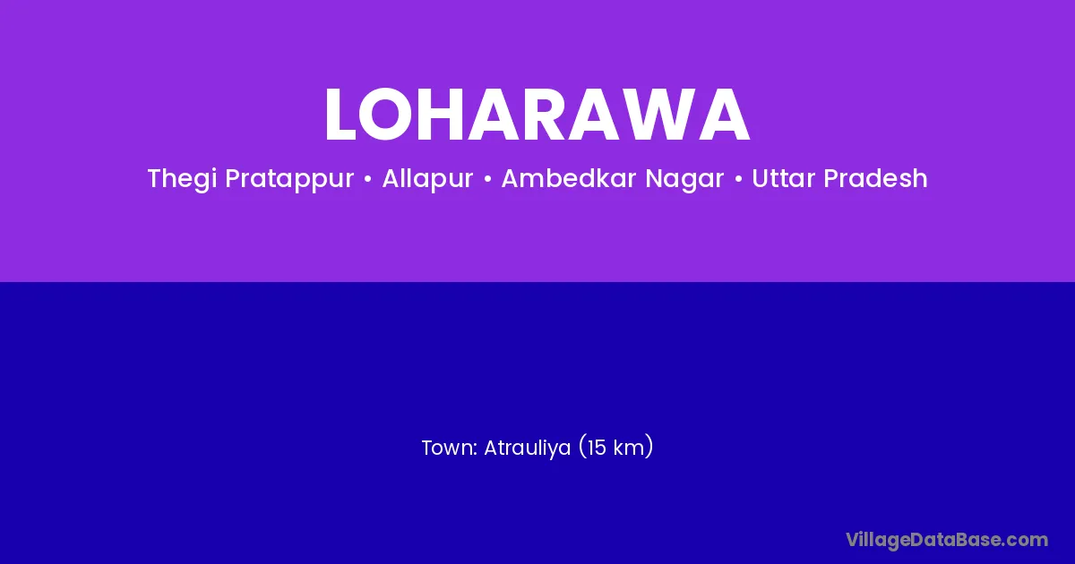 Atrauliya (15 km) is the nearest town to Loharawa village for major economic activities and is located approximately 15 km away.