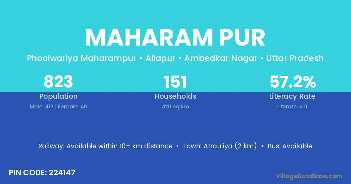 Atrauliya (2 km) is the nearest town to Maharam Pur village for major economic activities and is located approximately 2 km away.