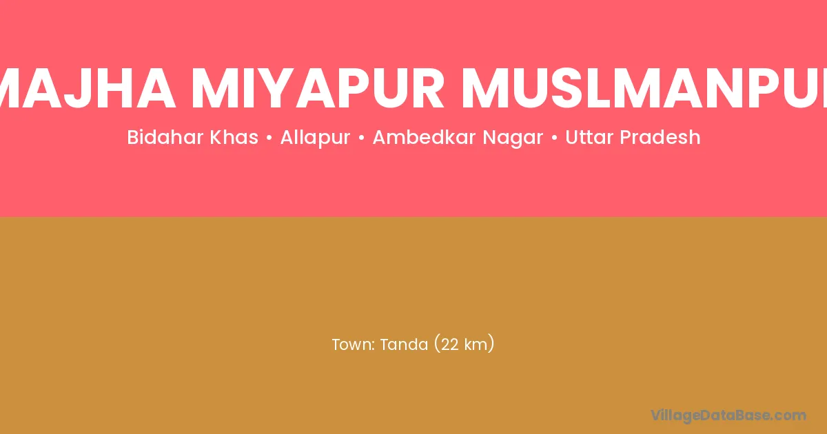 Tanda (22 km) is the nearest town to Majha Miyapur Muslmanpur village for major economic activities and is located approximately 22 km away.
