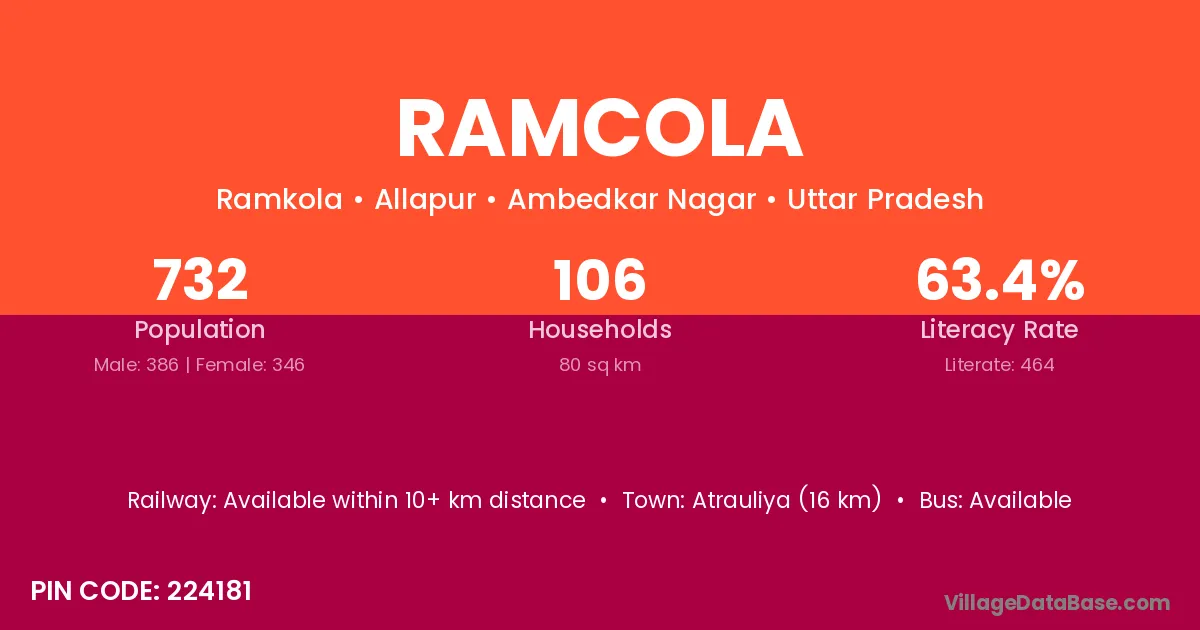 Atrauliya (16 km) is the nearest town to Ramcola village for major economic activities and is located approximately 16 km away.