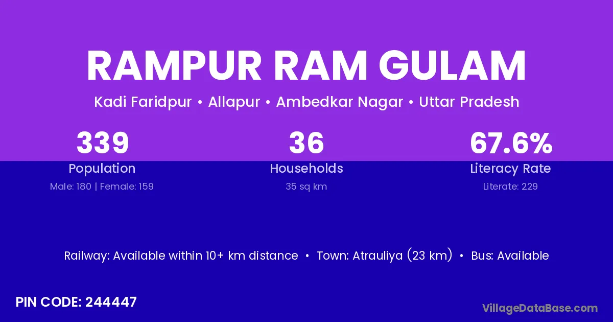 Rampur Ram Gulam village has a total population of 339 people, of which 180 are males and 159 are females.