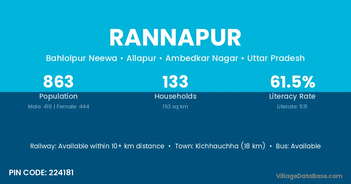 Kichhauchha (18 km) is the nearest town to Rannapur village for major economic activities and is located approximately 18 km away.