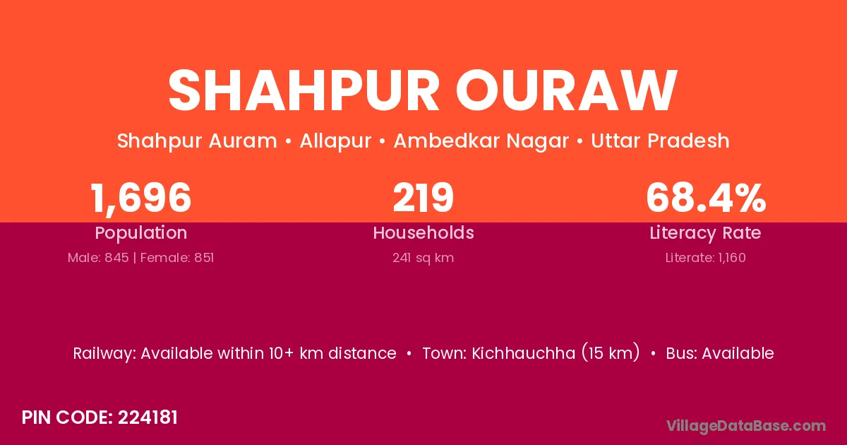 Kichhauchha (15 km) is the nearest town to Shahpur Ouraw village for major economic activities and is located approximately 15 km away.