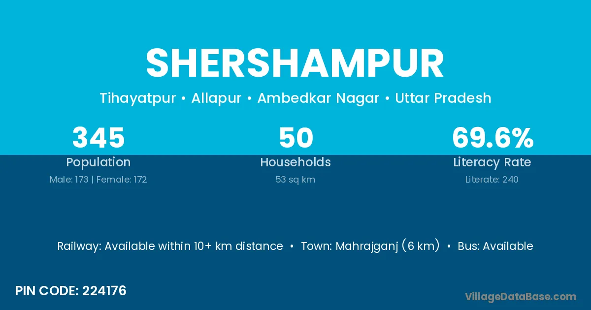 Shershampur village has a total population of 345 people, of which 173 are males and 172 are females.