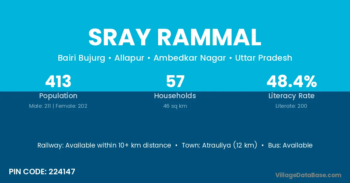 Sray Rammal village has a total population of 413 people, of which 211 are males and 202 are females.