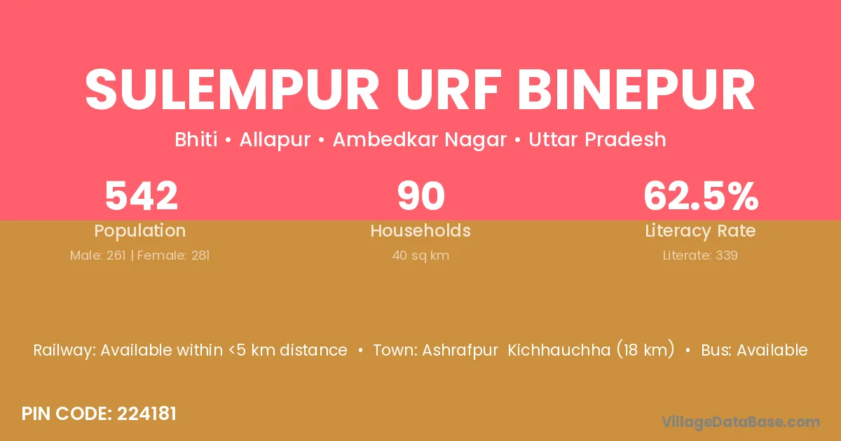Sulempur Urf Binepur village has a total population of 542 people, of which 261 are males and 281 are females.