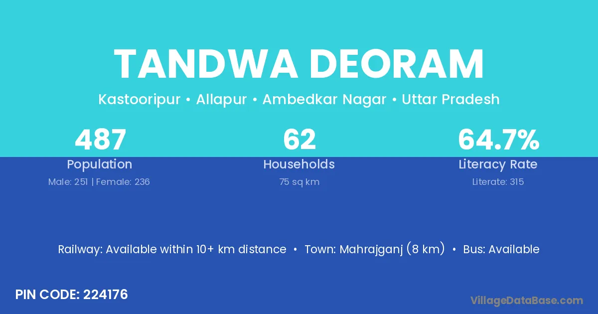 Tandwa Deoram village has a total population of 487 people, of which 251 are males and 236 are females.