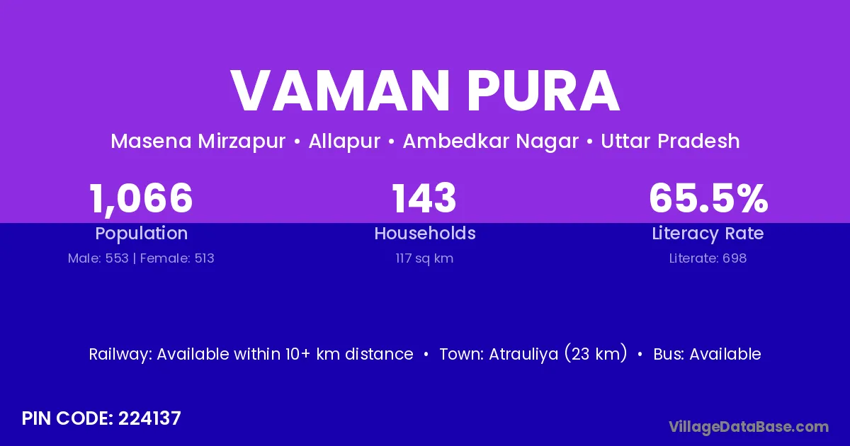 Vaman Pura village has a total population of 1,066 people, of which 553 are males and 513 are females.