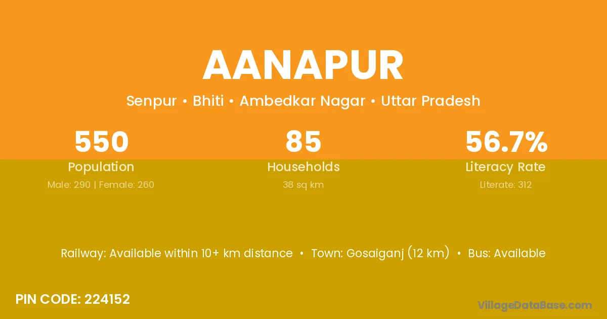 Aanapur village has a total population of 550 people, of which 290 are males and 260 are females.