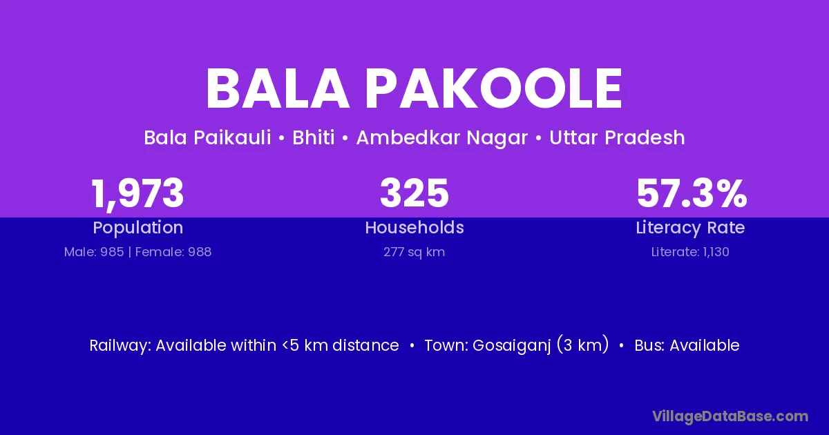 Gosaiganj (3 km) is the nearest town to Bala Pakoole village for major economic activities and is located approximately 3 km away.