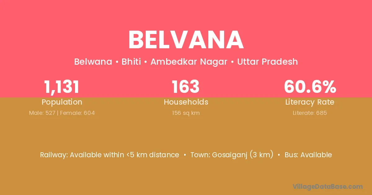 Gosaiganj (3 km) is the nearest town to Belvana village for major economic activities and is located approximately 3 km away.