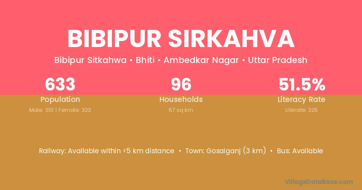 Gosaiganj (3 km) is the nearest town to Bibipur Sirkahva village for major economic activities and is located approximately 3 km away.