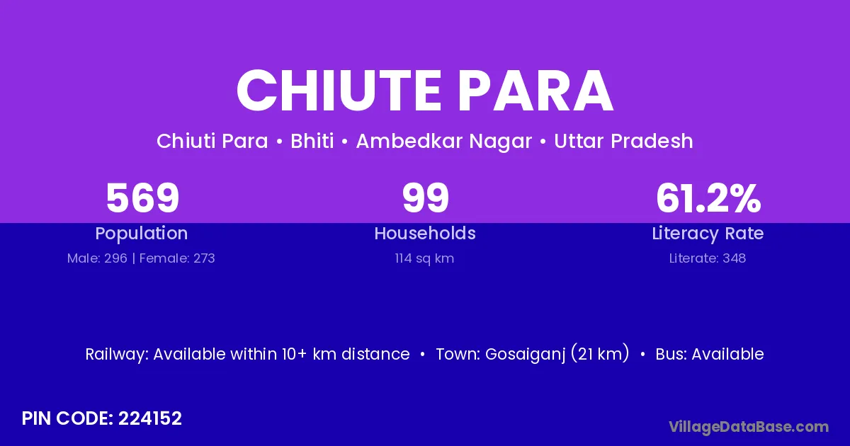 Chiute Para village has a total population of 569 people, of which 296 are males and 273 are females.