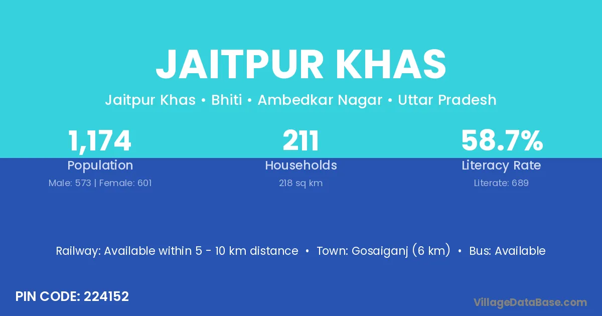 Gosaiganj (6 km) is the nearest town to Jaitpur Khas village for major economic activities and is located approximately 6 km away.