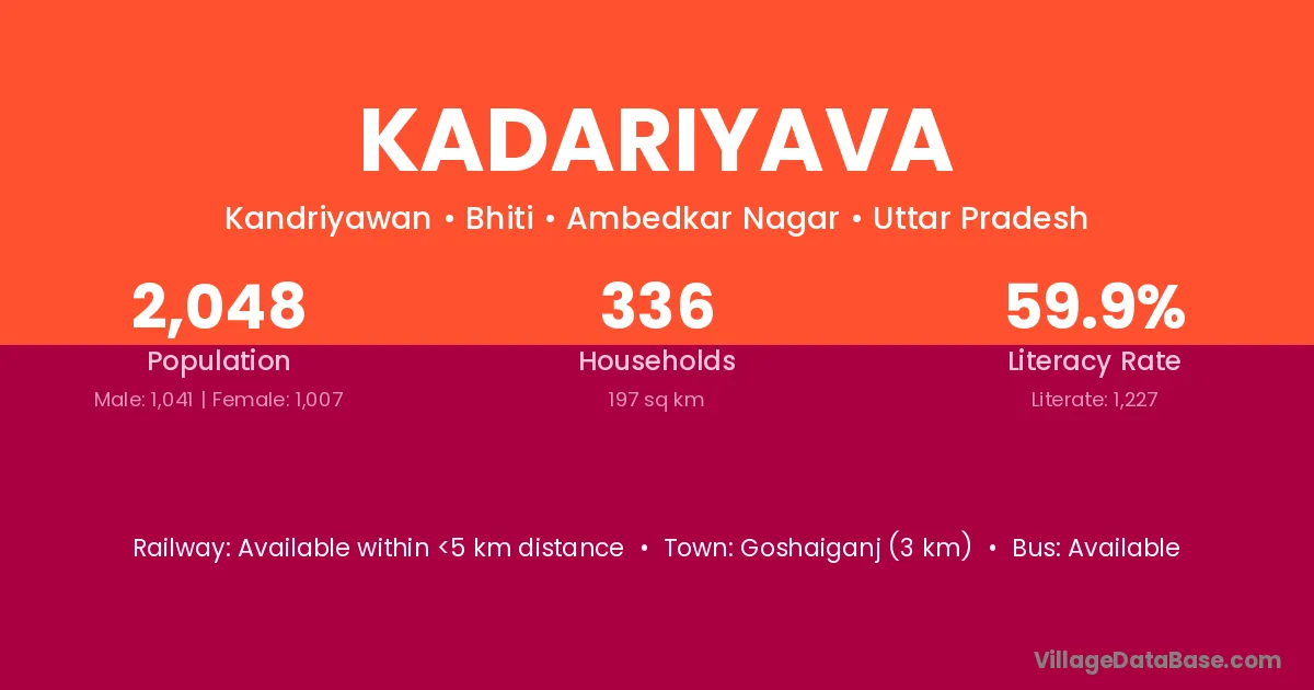 Goshaiganj (3 km) is the nearest town to Kadariyava village for major economic activities and is located approximately 3 km away.