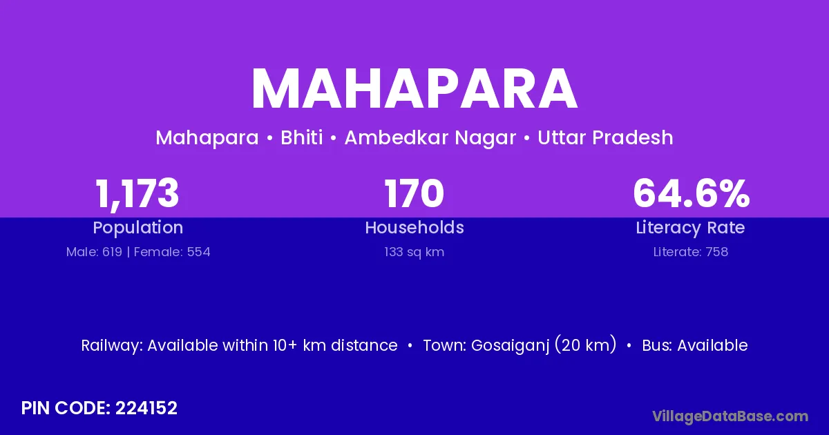 Gosaiganj (20 km) is the nearest town to Mahapara village for major economic activities and is located approximately 20 km away.