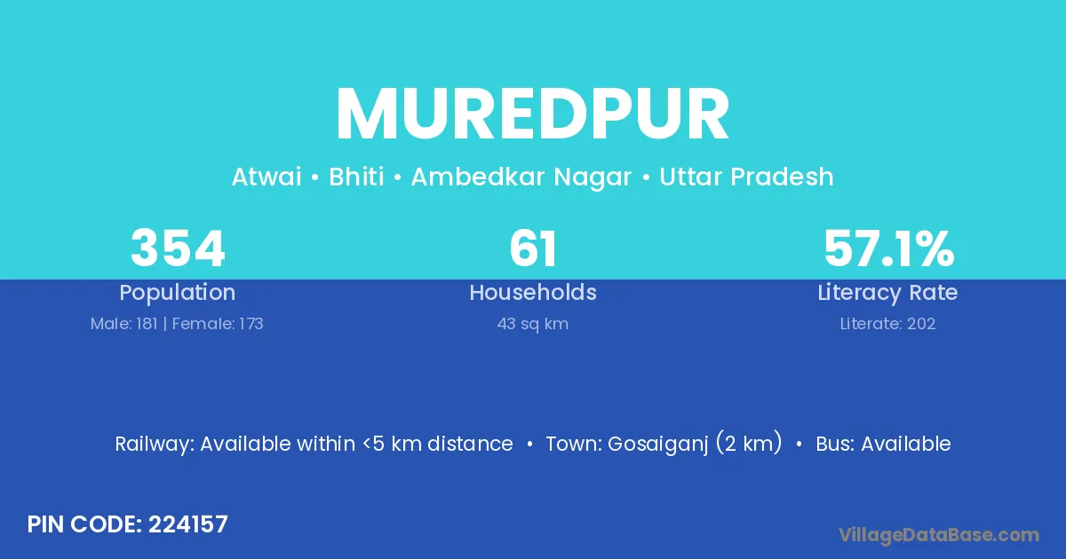 Gosaiganj (2 km) is the nearest town to Muredpur village for major economic activities and is located approximately 2 km away.
